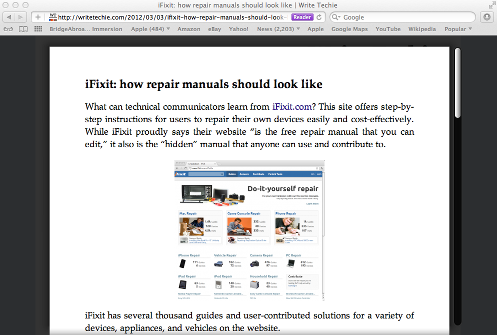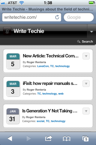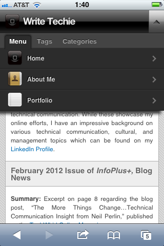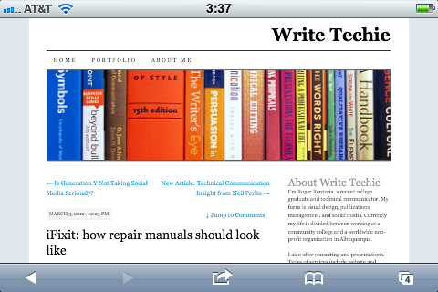 Ever since I began this blog about technical communication less than a year ago, I kept statistics about usage and filtered it down to mobile users and to-date my site has been visited over 130 times by iPhones, iPads, and Android devices. While that is a small number of visitors, there are larger sites out there that can definitely benefit by transitioning over to mobile-friendly formats. It is important to design websites that contain a mobile-friendly version because of the influx of mobile devices out in the wild. For example, TechCrunch’s MG Siegler mentioned that Apple sold over 315 million iOS devices and in 2011 sold 172 million of them.