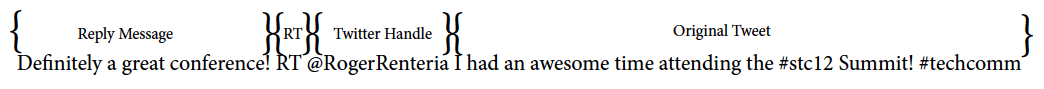 Before I finish, Ben Woelk posted an entry discussing the statistics regarding Twitter Use at #stc12. It is his second year writing about how we use Twitter at the STC Summit. You can check out his post on Twitter at STC 2011 and 2010 for comparison.