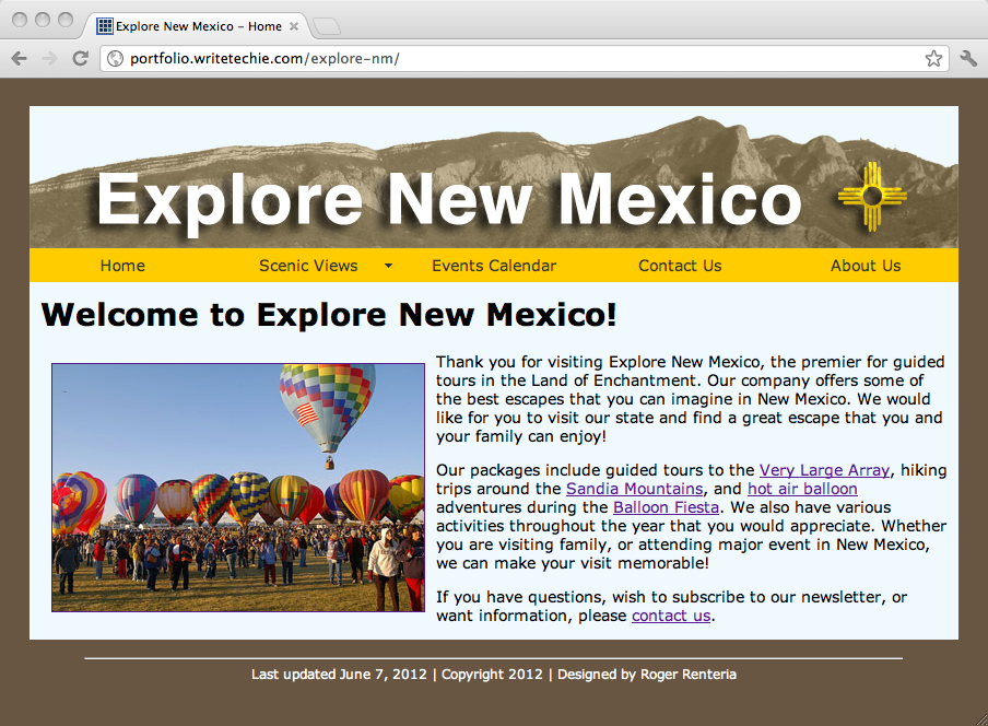 Explore New Mexico – sample portfolio site